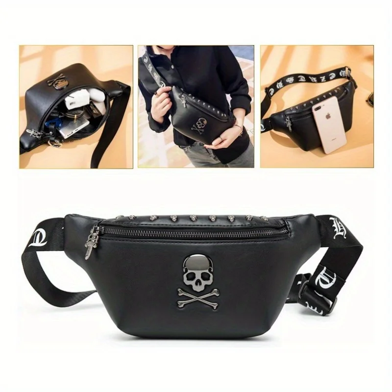 Large Capacity Skull Leather Belt Bag Casual Skull Waist Bag Mobile Phone Waist